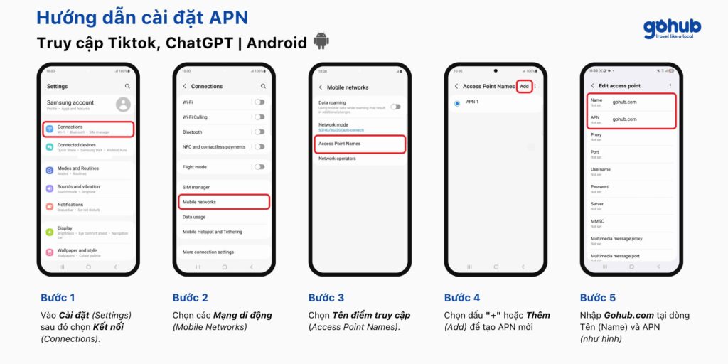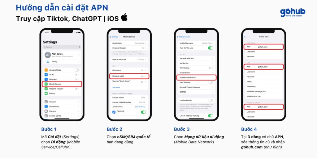 Hướng dẫn này áp dụng khi eSIM có sóng nhưng không vào được mạng, hoặc cần dùng Tiktok.